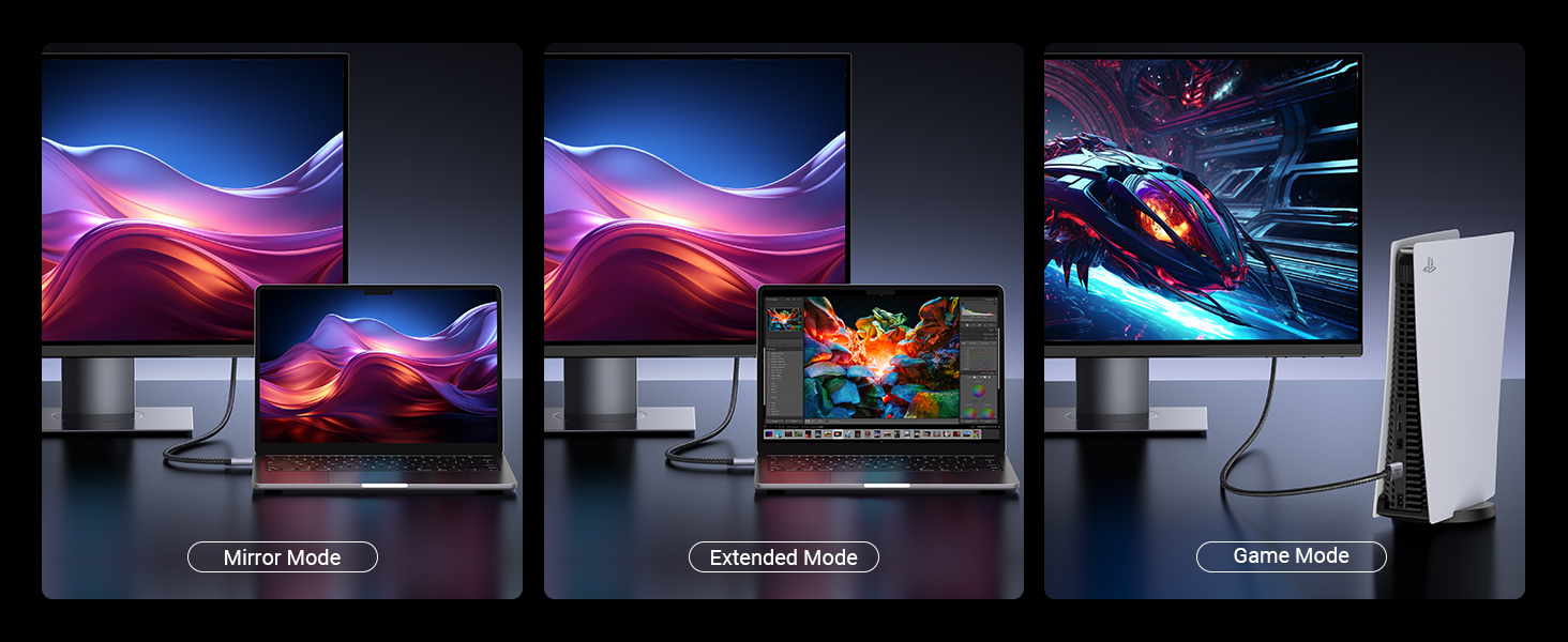 7.Three Modes Supported: Mirror Mode, Extended Mode, and Game Mode for versatile display needs.